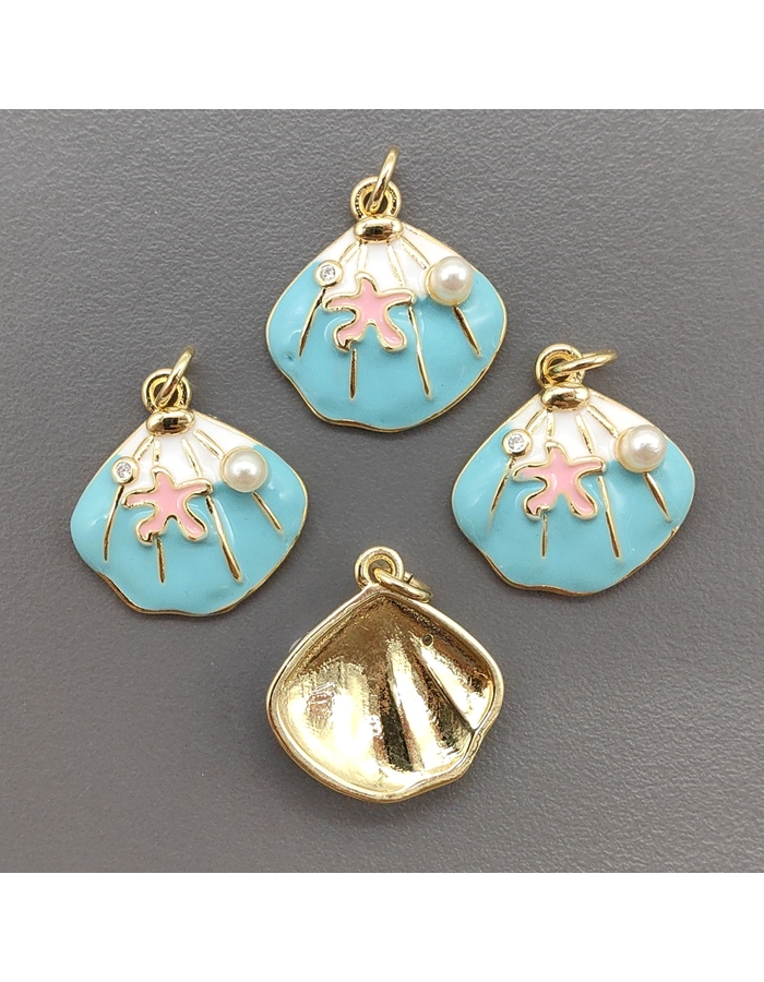 Подвеска ракушка с бирюзовой эмалью, 18 мм, позолота