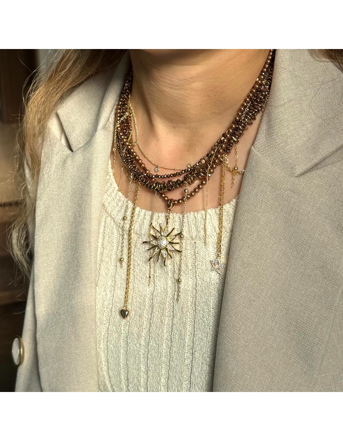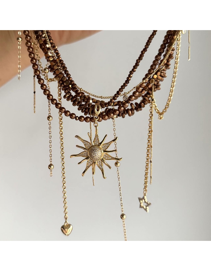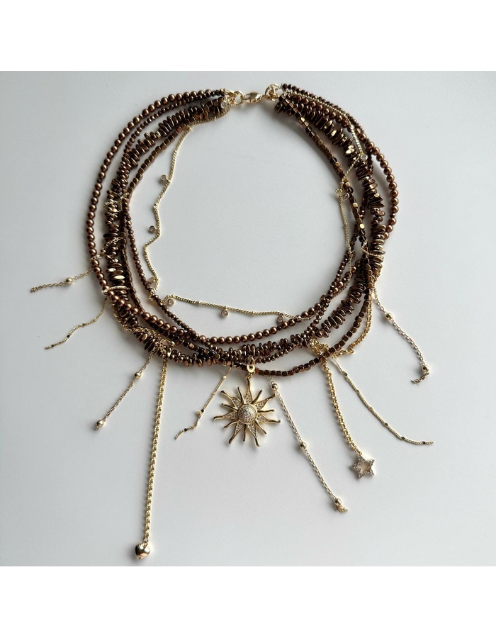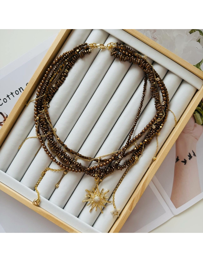 Данный набор фурнитуры рассчитан на создание Колье из гематита, жемчуга майорка, бусин из стекла в трендовом молочно-шоколадном цвете пантон.