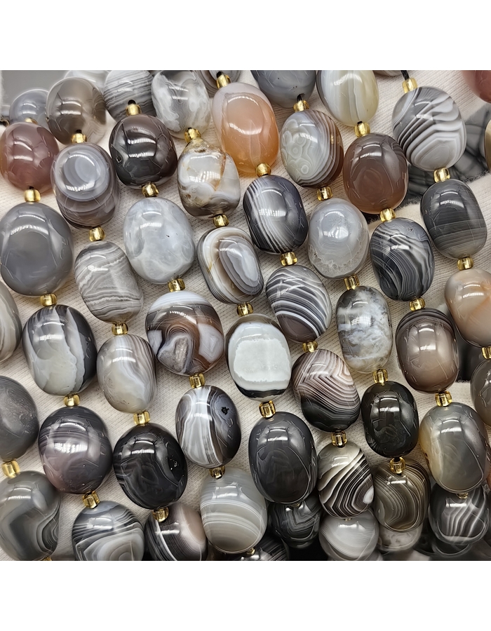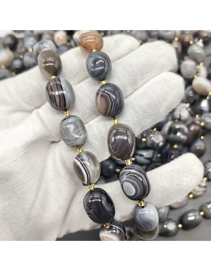 Размер бусин примерно +-1 мм в длина 14-18 мм, толщина 11-12 мм