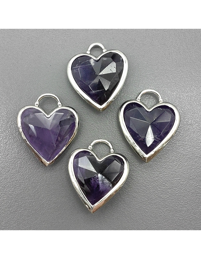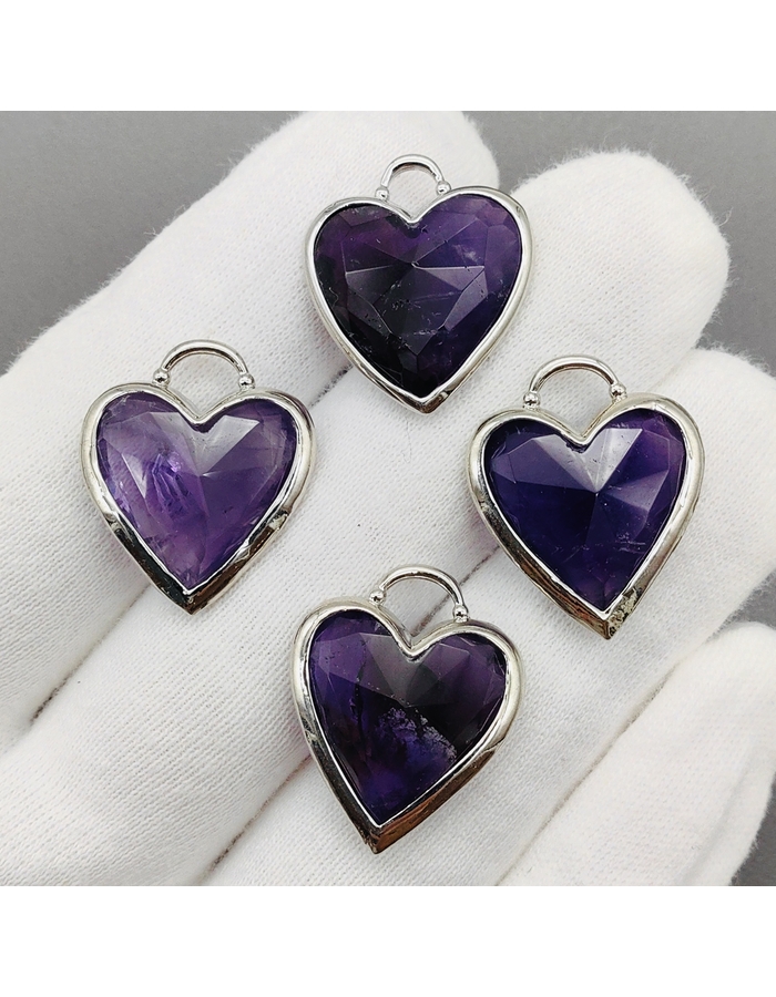 Подвеска Сердце темный аметист, 23.5*20 мм, родий