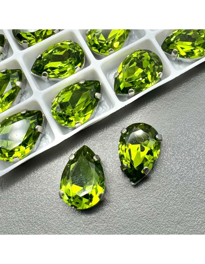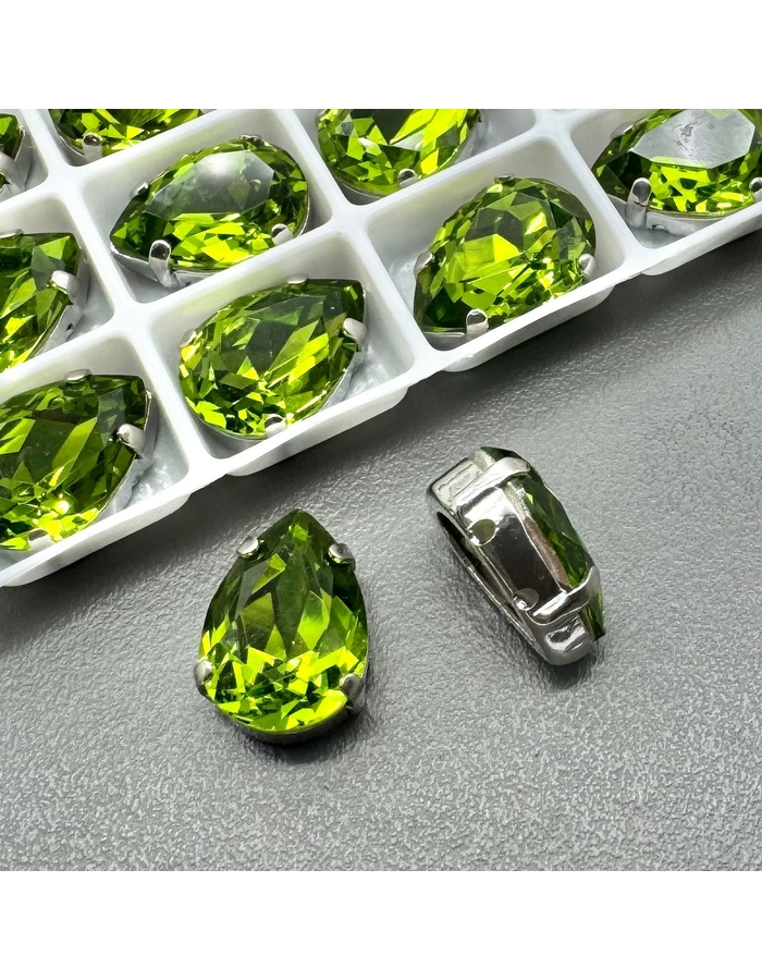 Кристаллы в цапах капля, 14*10 мм, зеленый, родий