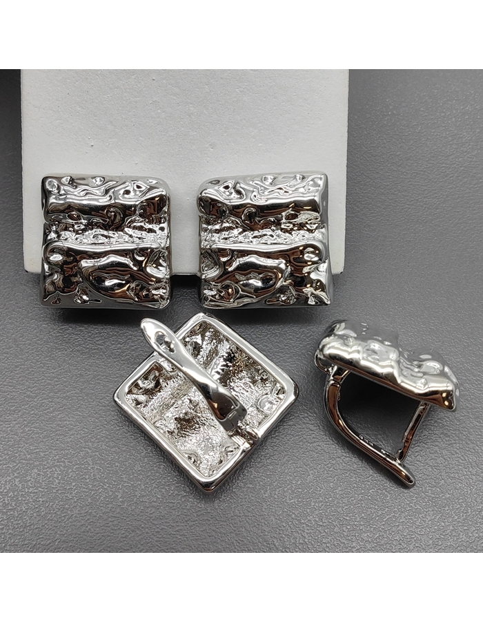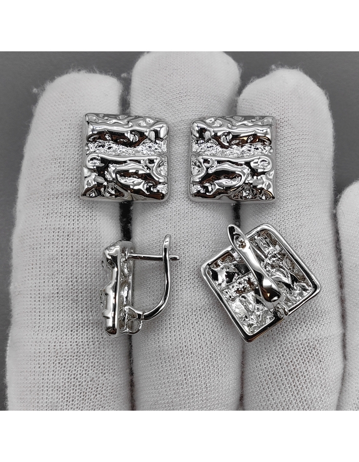 Швензы Квадрат мятый без фианитов, 16 мм, родий